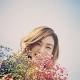 는 무지개색 꽃다발을 들고 카메라를 향해 미소를 짓고 있다. 특히